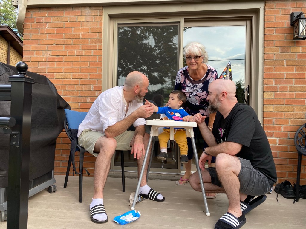We travelled to Toronto this morning to attend a party for Royce to celebrate his very first birthday. He was just waking up from a good nap, so he was set to party!