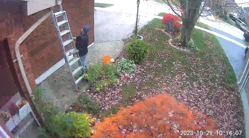 This morning I cleaned all the leaves from the eavestrough at the front of the house.