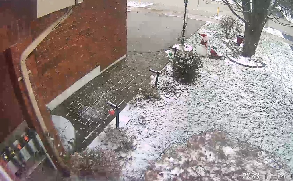 The forecast was right. It’s snowing. Fortunately, though, Jane got the last of the hostas removed and put into yard waste.