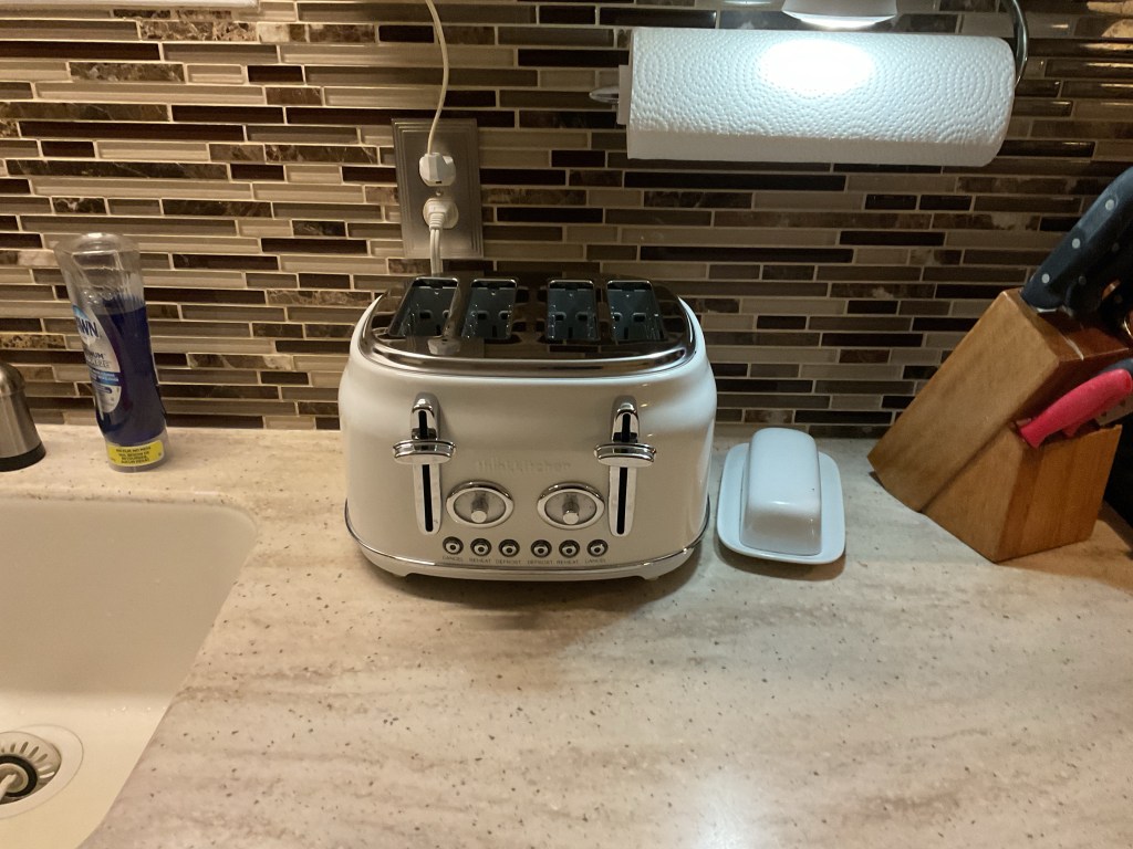 This is the third try at getting a new toaster. This one is a retro style in white and looks pretty good.