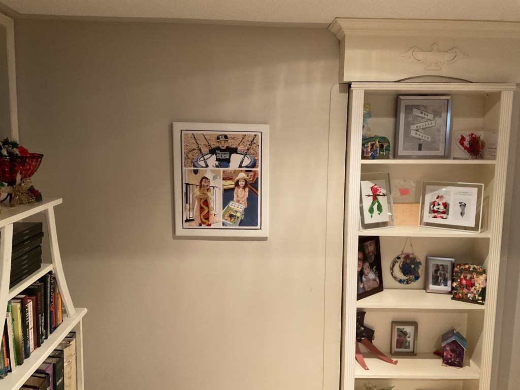 The bookshelf door is full of their stuff including little things they have made for us.