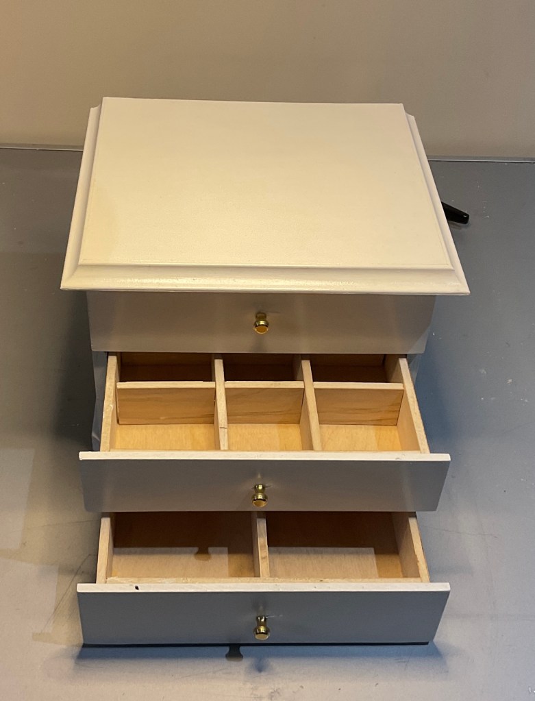 Today I got the drawer dividers made and installed in the keepsake box.