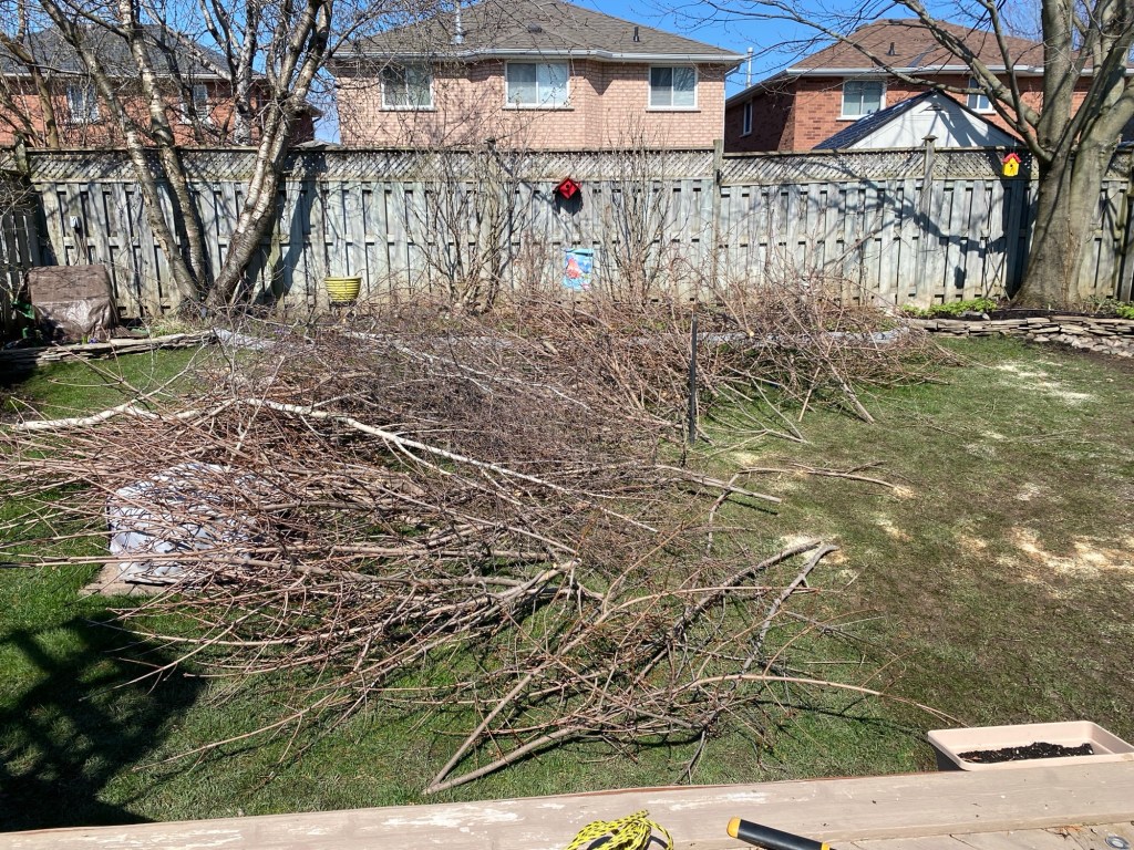 This morning Jane and I began cleaning up all the tree limbs from the birch tree and maple that were taken down yesterday.