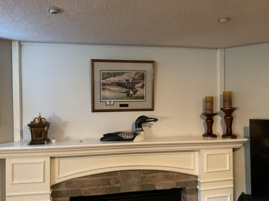 This afternoon I put a piece of trim over the fireplace to finish off my repair after the plumbers had accessed the pipe behind it.