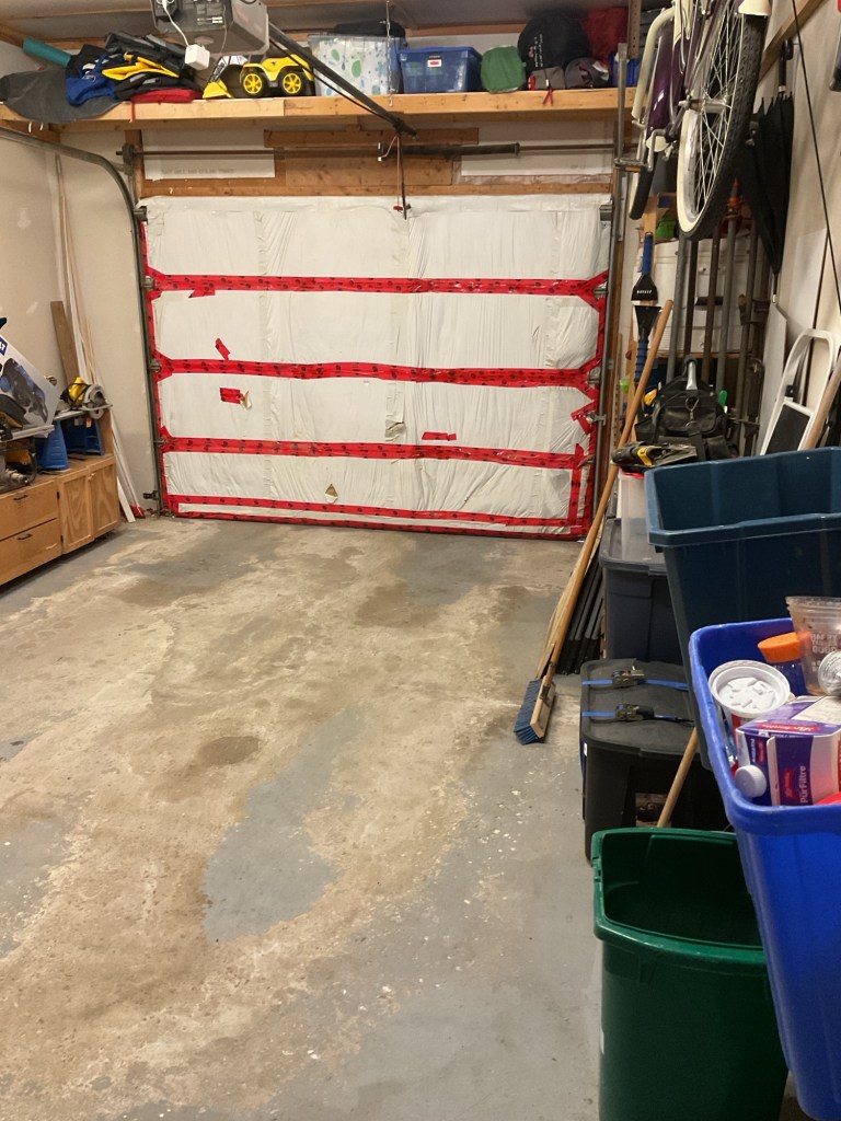 In the meantime I cleaned up the garage while Jane painted the damaged wall outside the bathroom.