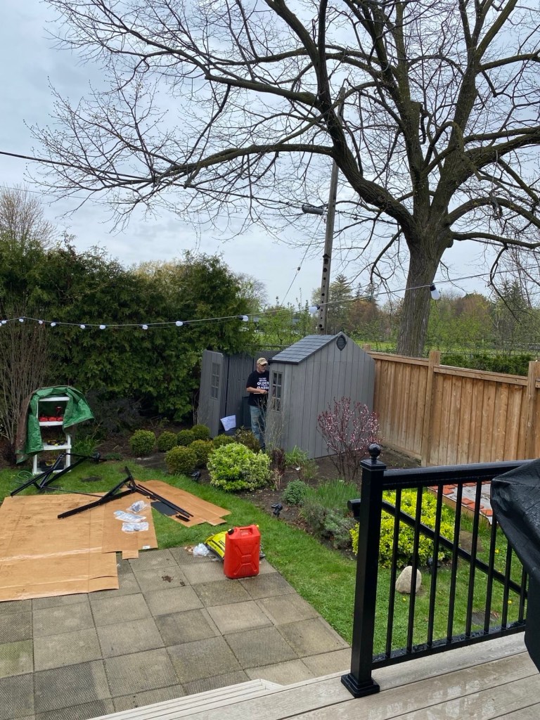 After we get back from gymnastics, the plan is to finish putting the roof on Steve’s new shed.