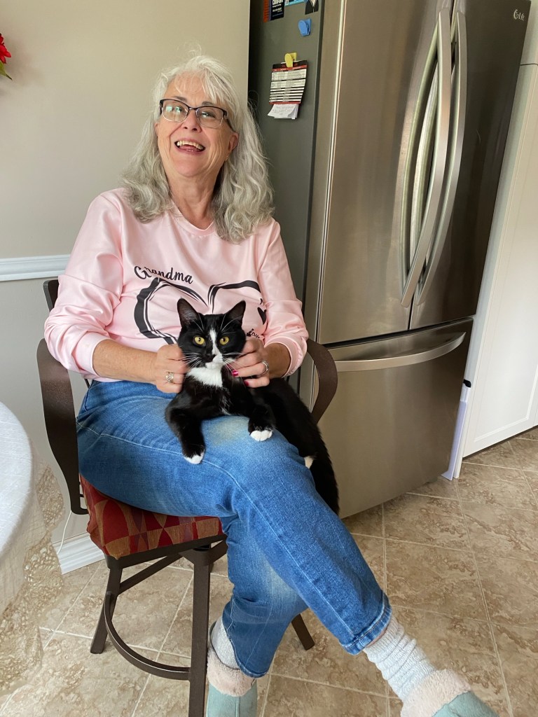 She is a very friendly feline and extremely curious. She has even ventured inside our house, checking out every room including the Family Room downstairs.