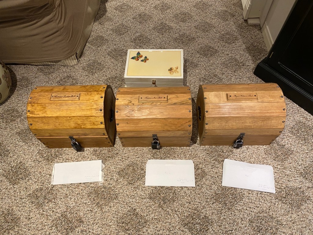 And I have been finalizing the treasure chests for the grandkids when they reach their tenth birthday.