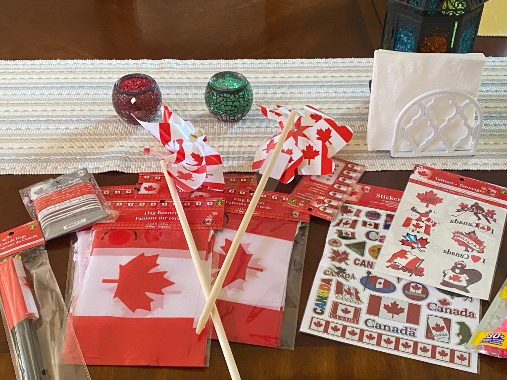 I got flags, banners, windmills and ballon’s, all with Canada Day symbols.