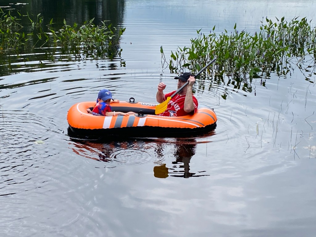 After lunch, Chris and Max took their inflatable boat out for a spin out on Fisher Lake.