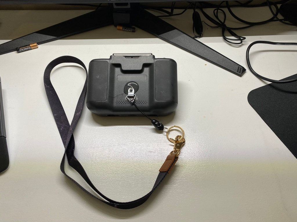Because there are times when I need both hands in using my drone, I needed a way to fasten a neck lanyard to the controller which would allow it to dangle in front of me and still allow quick retrieval.