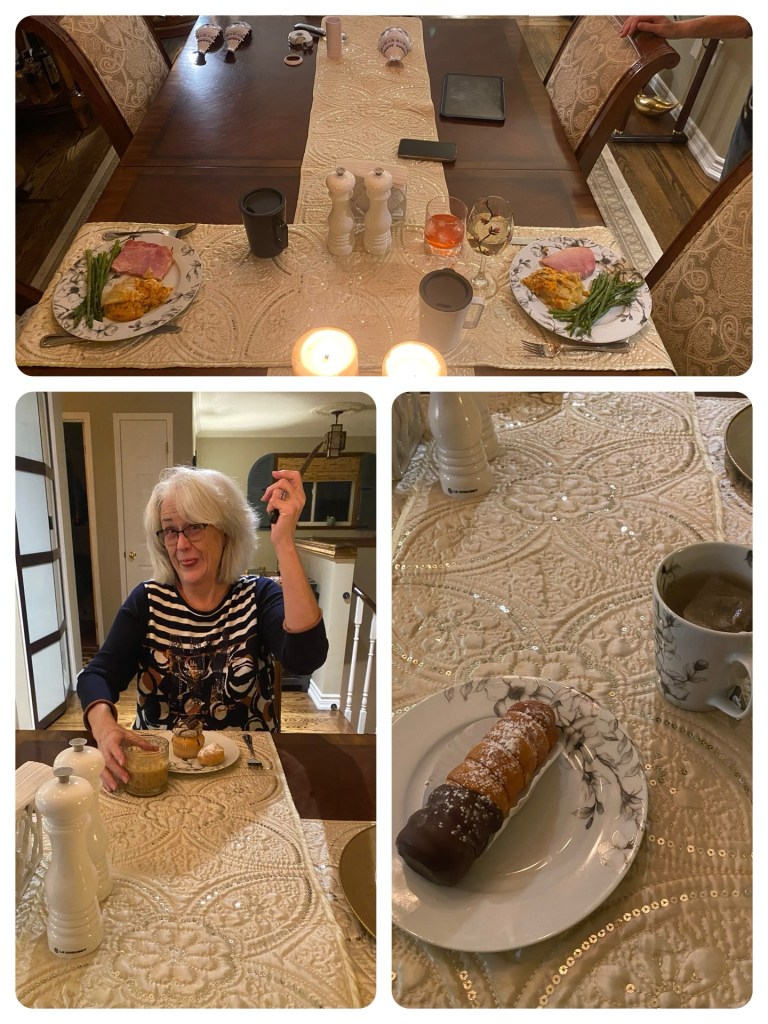 From time to time Jane and I like to have our dinner in our dining room instead of our kitchen. Last night was one of those times. We had gone to a bakery earlier in the day to pick up some dessert.