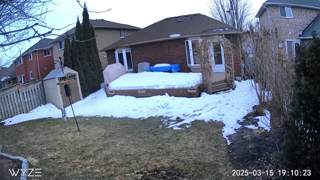 Today the temperature got up to 15C and the snow in the back yard is melting quickly, especially the grassy area.