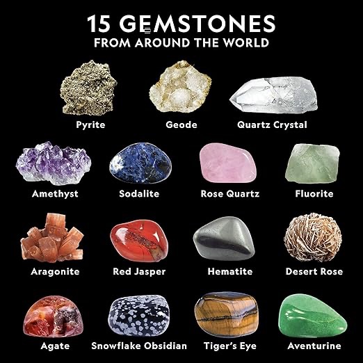 A geode is a rock, usually with a hollow inside, that has crystals of some kind inside. Here are the different gems that were in this set.