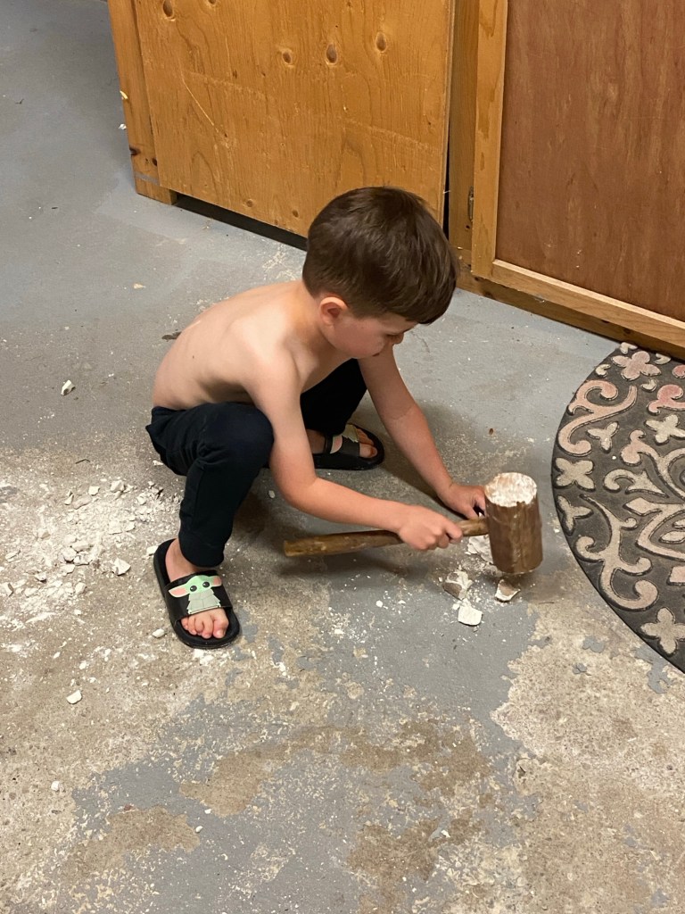 Max has become interested in geodes and he received a set from National Geographic which he worked on in the garage.