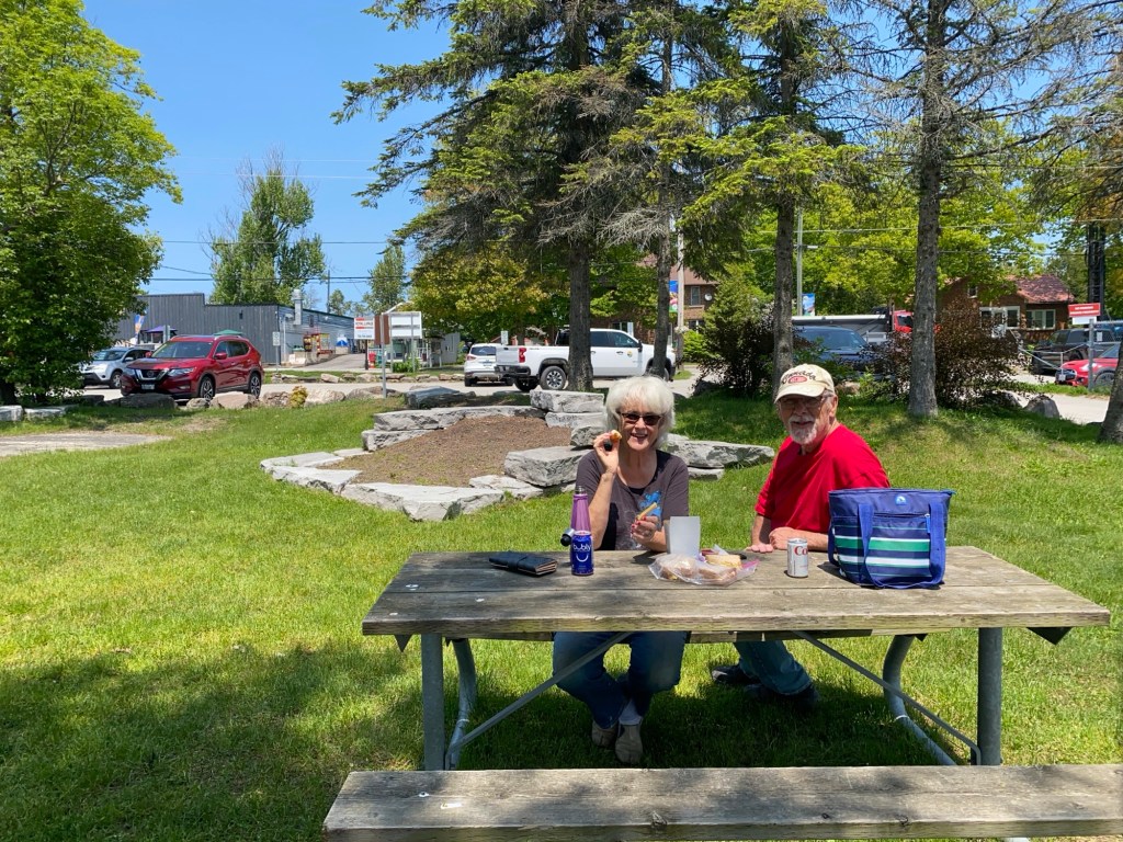 After some hard work we went over to the Honey Harbour town dock to have our egg salad sandwiches and cold drink while enjoying the scenery.