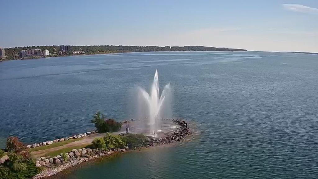 This morning Jane and I headed down to the Barrie waterfront because I wanted to get some aerial pictures of the fountain as well as some shots of the construction at Allandale station.